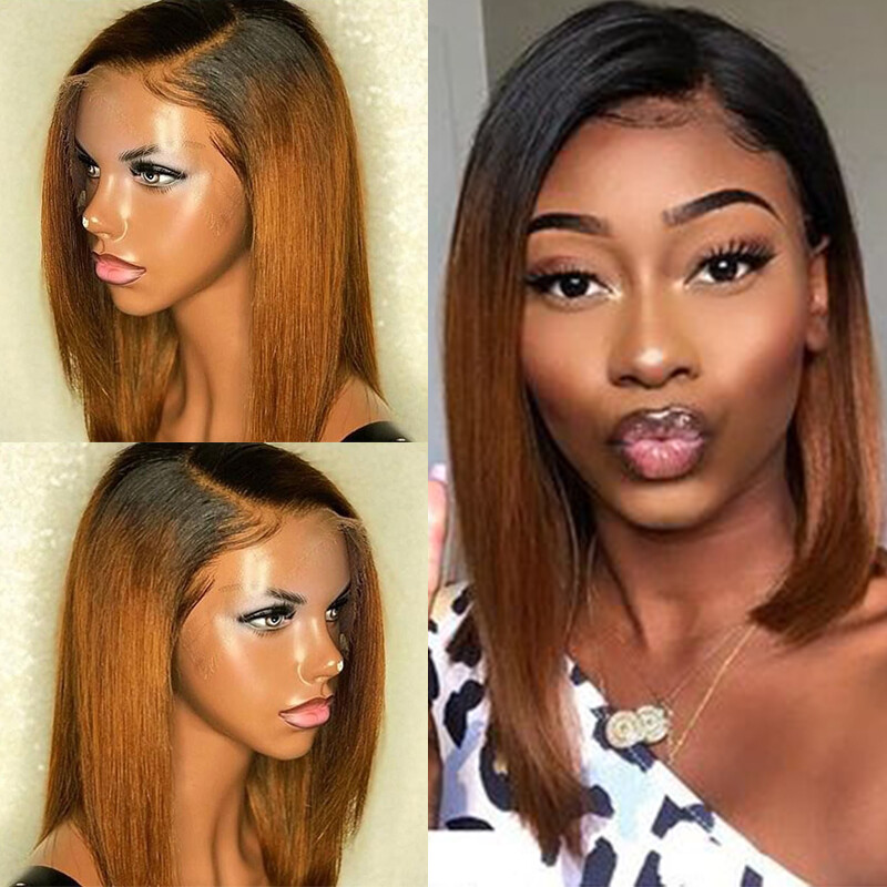 Short Bob Style Wigs Natural Straight Indian Human Hair Lace Front